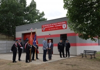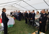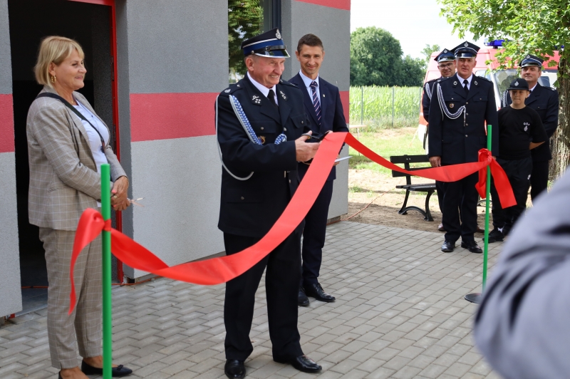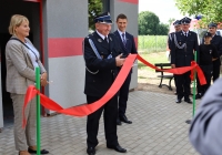 Symbolicznego przecięcia wstęgi oddającej nową remizę OSP