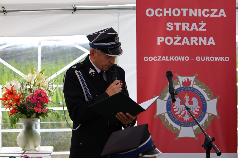 Po odśpiewaniu hymnu państwowego Prezes OSP Goczałkowo – Gurówko druh Edmund Krawczyk wspólnie z druhem Tadeuszem Tomaszewskim – Sekretarzem OSP, powitali w imieniu organizatorów wydarzenia przybyłych gości. A byli to m.in.: Łukasz Grabowski – Radny Sejmiku Województwa Wielkopolskiego, Wojciech Szymczak – Dyrektor Biura Poselskiego Posła Zbigniewa Dolaty, Jacek Kowalski – Prezes Oddziału Powiatowego Z OSP RP i Wiceprzewodniczący Rady Powiatu Gnieźnieńskiego, Radni Powiatu Gnieźnieńskiego – Danuta Winiarska, Zbigniew Bręklewicz oraz Telesfor Gościniak a także reprezentujący Starostę Gnieźnieńskiego – Mariusz Mądrowski – Etatowy Członek Zarządu Powiatu Gnieźnieńskiego. Władze Gminy Niechanowo reprezentowali: Wójt Szymon Robaszkiewicz i Bożena Jaworska – Przewodnicząca Rady Gminy Niechanowo.