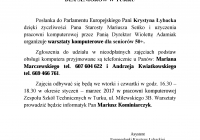 Posłanka do Parlamentu Europejskiego Pani Krystyna Łybacka dzięki życzliwości Pana Starosty Mariusza Seńko i użyczenia pracowni komputerowej przez Panią Dyrektor Wiolettę Adamiak organizuje warsztaty komputerowe dla seniorów 50+.